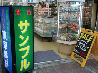 是制造销售食品样品的店铺。店内摆满了看上去与实物并无二致的“美味佳肴”。附有迷你样品的挂件和钥匙扣等很受欢迎。