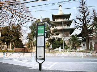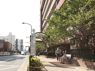 Located along Kiyosumi-dori Street, not far from the Edo-Tokyo Museum. The red-bricked school building of Nihon University Daiichi Junior & Senior High School, which is located adjacent to the bus stop, serves as a landmark. Please feel free to make use of the seating and shade canopy available at the bus stop.