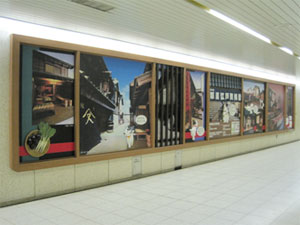 地下鉄駅近くにある施設を紹介するパネルを、駅構内に展示しています。