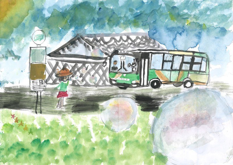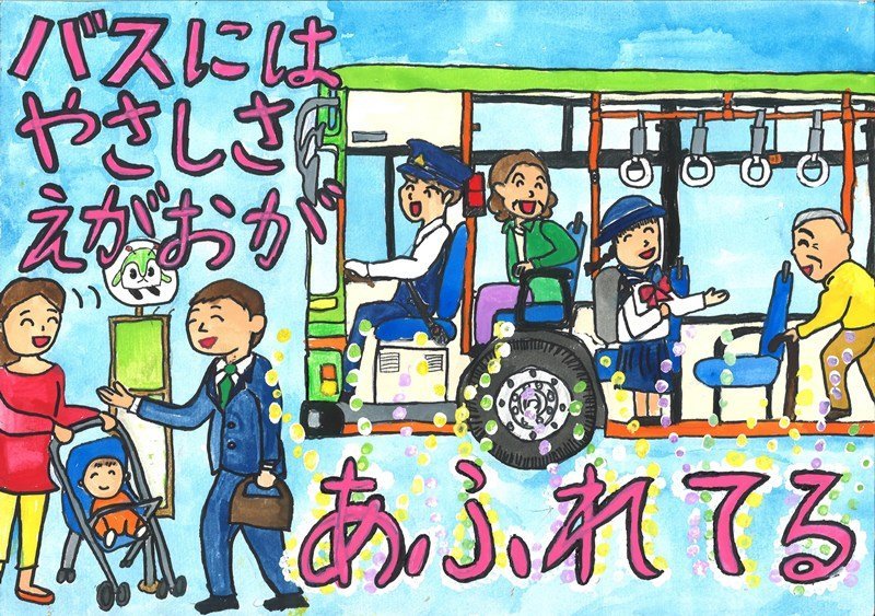 「バスにはいろんな人のやさしい思いがたくさんあふれていて、えがおといっしょにのせていってくれます。」