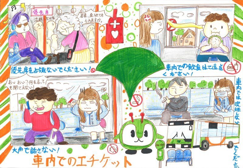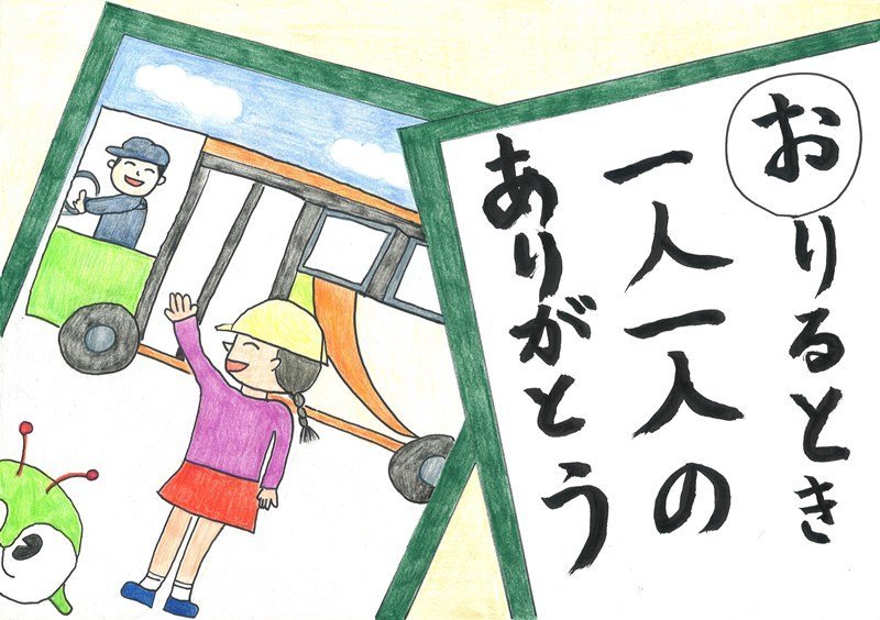「みんながニコニコできるように、おしずかにバスにのってほしいと思ってかきました。」