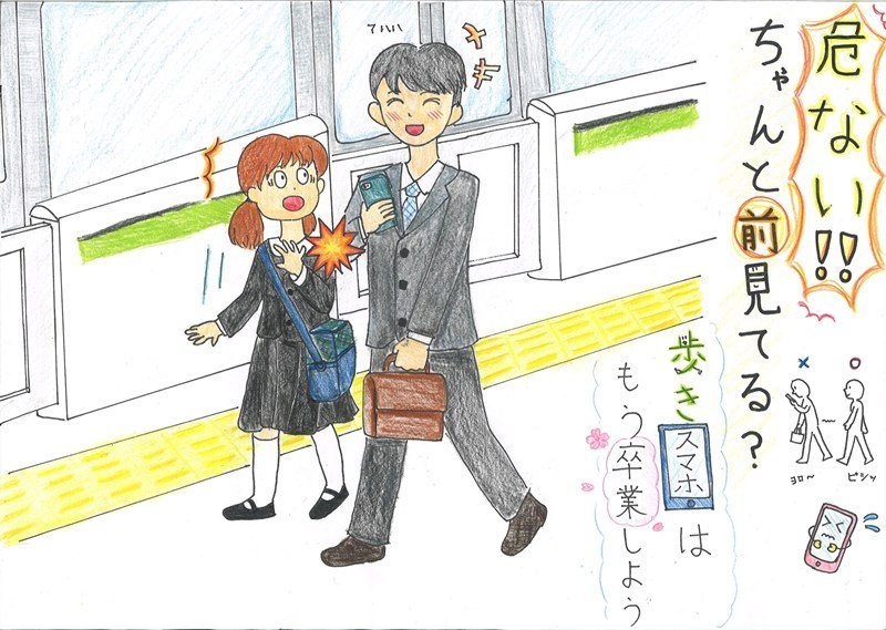 「マナー作品では目を引くために強い色が多く使われることが多い中で、この作品はやさしい色づかいで表現されているところがとても印象的です。メッセージと表現、そして描かれた人たちの表情が美しく調和し、心にすっと届く一枚になっています。ずっと見ていたくなる、あたたかくてきれいな作品ですね。」