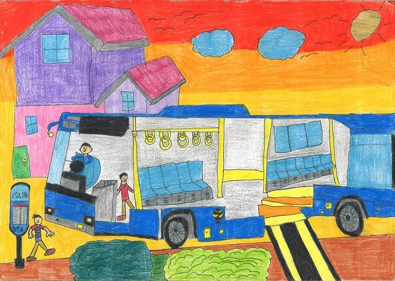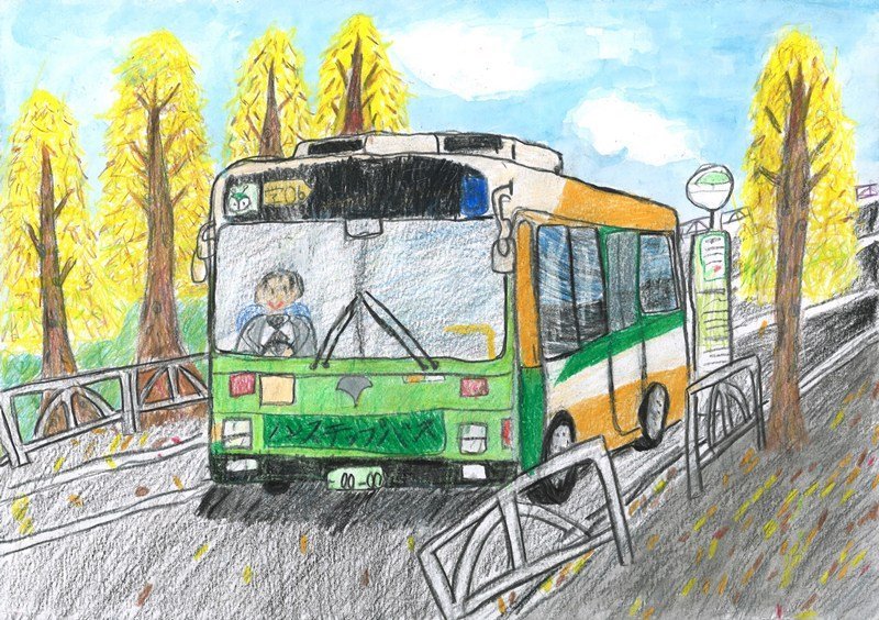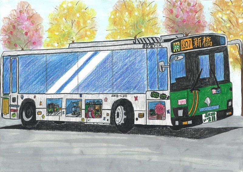 「世界陸上の帰りに見たバスがかっこよくて、絵にしたくなったのでかきました。」
