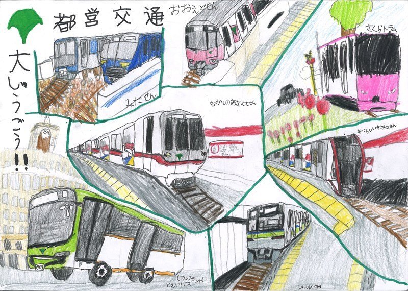 東京都交通局では、昨年度に引き続き、小学生のお子様を対象に、誰もが楽しく、気持ちよく公共交通を利用するためのマナーについて考える機会とするとともに、公共交通について愛着や親しみを感じてもらうことを目的として、絵画コンクールを実施しました。