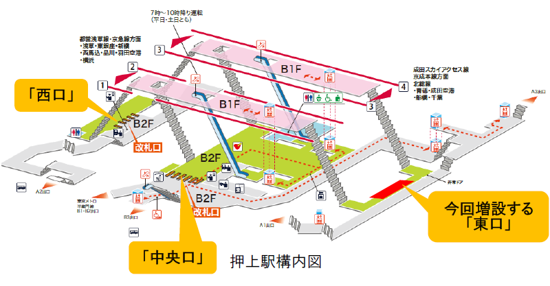 京成電鉄株式会社(本社:千葉県市川市、社長:小林 敏也)と東京都交通局は、共同運営する押上駅(東京都墨田区押上1-8-21)において改札口を増設し、2020年4月1日(水)より供用を開始します。これに伴い各改札口の名称を以下の通り設定します。